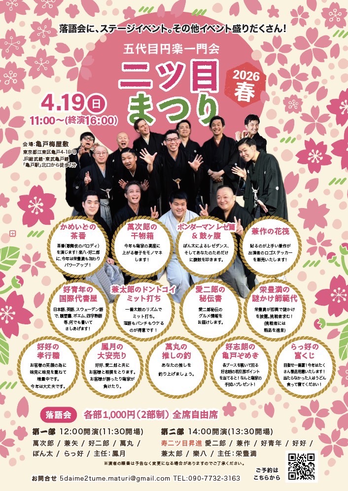 おすすめ公演Pick up 2026.01.31(土) 新春演芸会 2026.01.31(土) 新春若手寄席 2026.02.8(日) 第25回さがみはら若手落語家選手権【第3回 予選会】 詳しく見る> 2026.02.20(金) 三遊亭好二郎十周年記念 兼好・好二郎親子会 詳しく見る> 2026.03.5(木) シャイニング★フォー 詳しく見る> 2026.03.21(土) 浅草 好二郎独演会その十 ゲスト:しゃばぞう 詳しく見る>